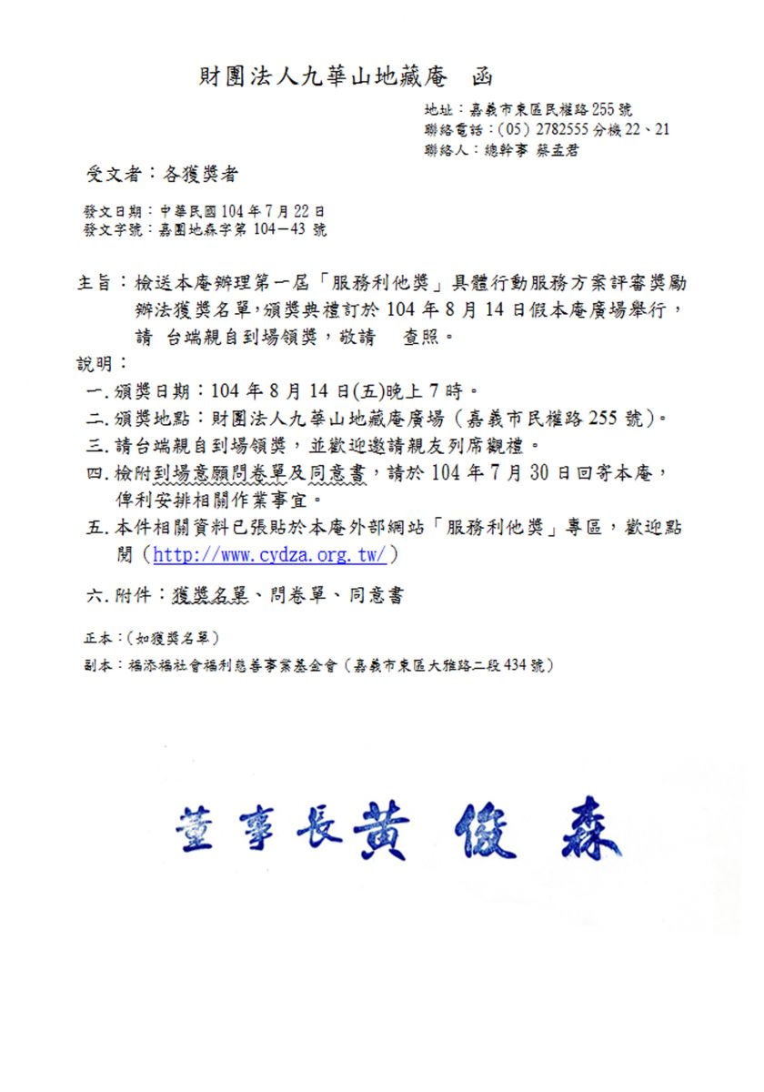 相片名稱:服務利他-函