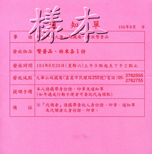 發放地點於九華山地藏庵
