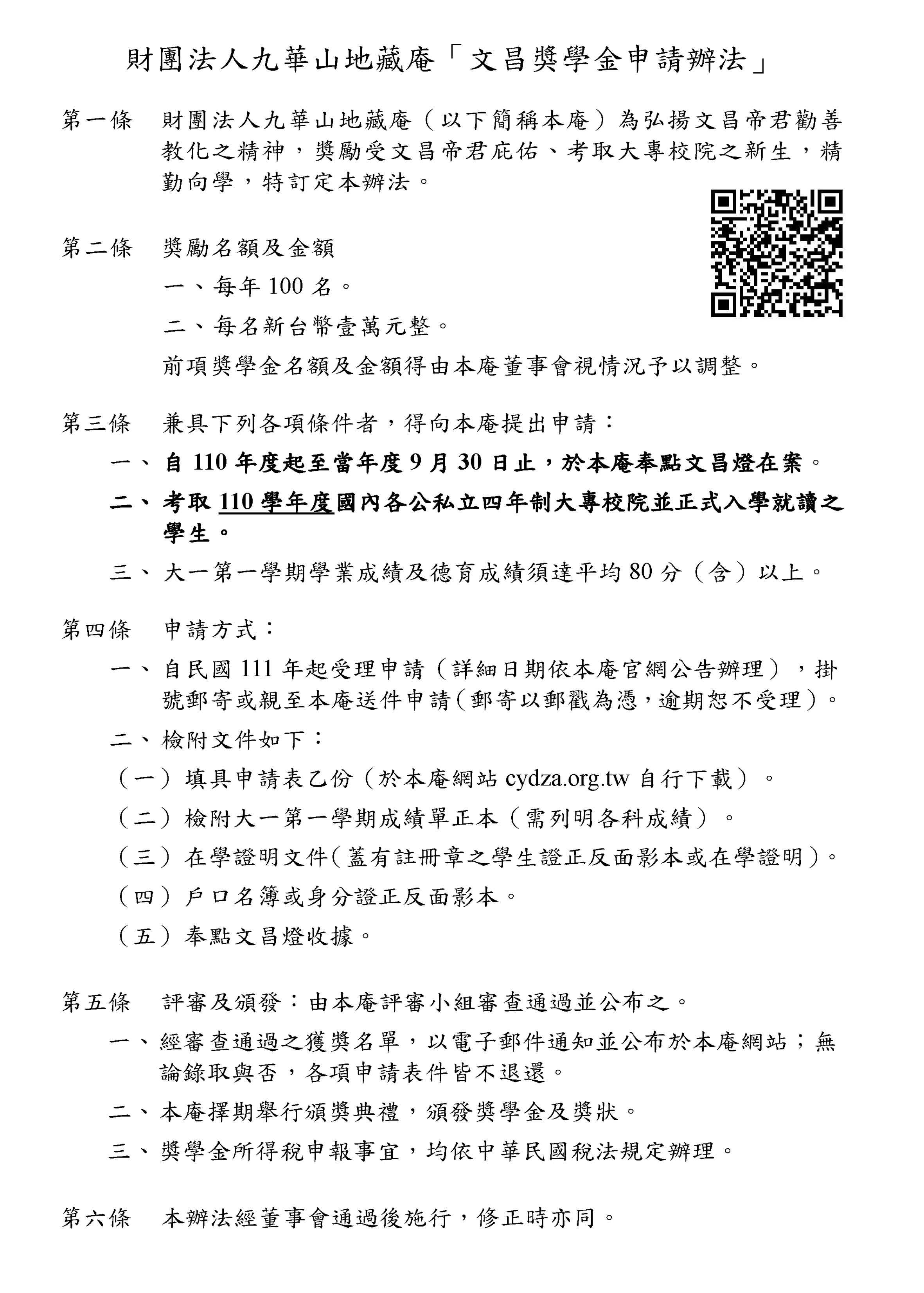 「110年文昌獎學金申請辦法及表格」