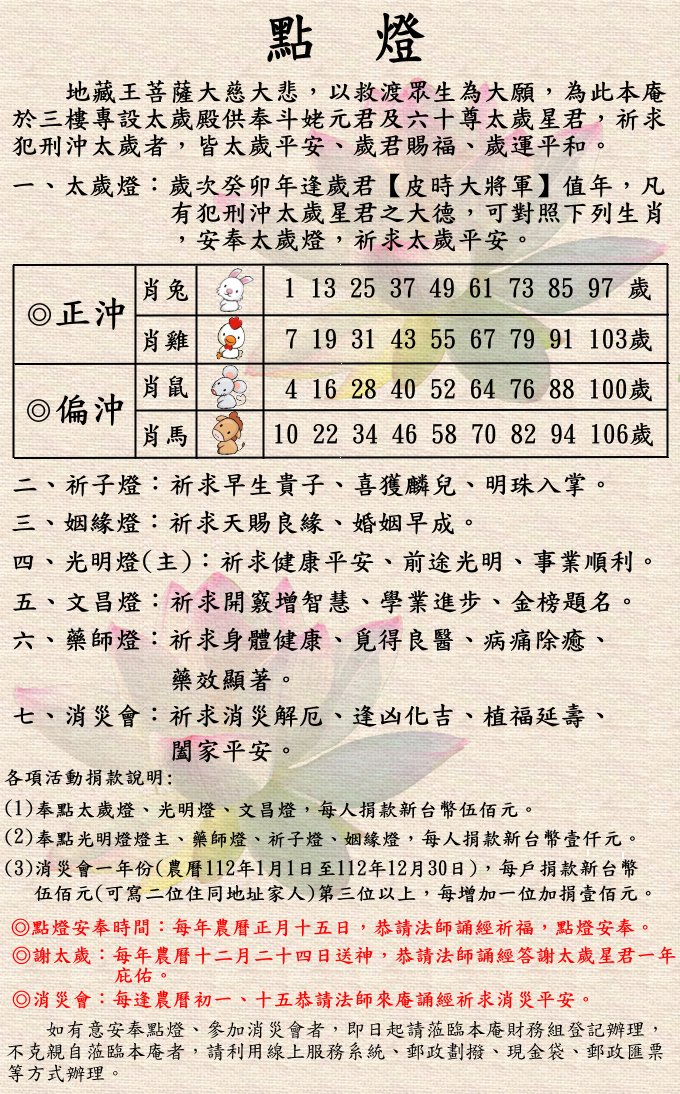 2023年 歲次癸卯年點燈祈福 受理中