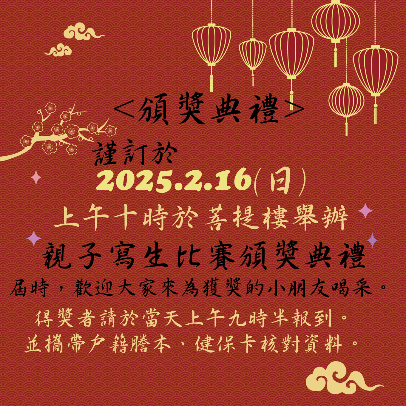 頒獎時間:114/2/16(日) 9點30報到 10點頒獎